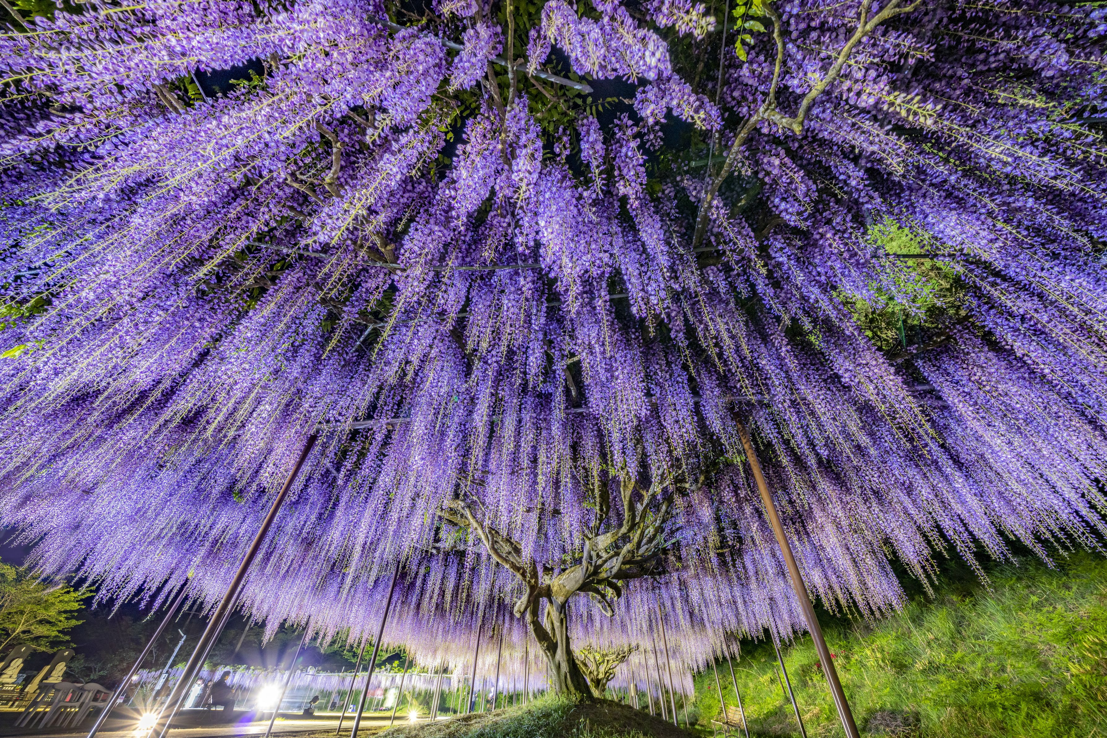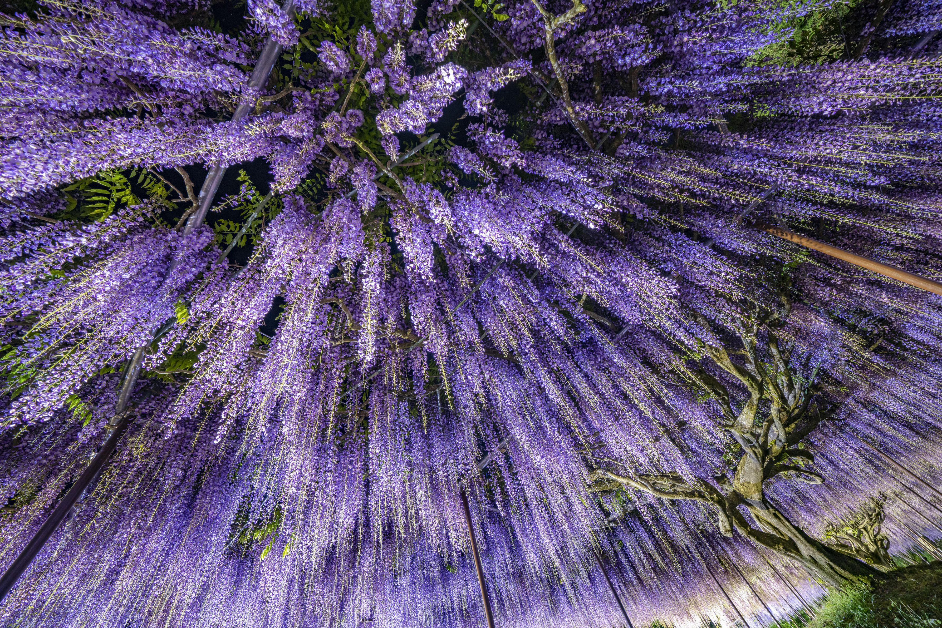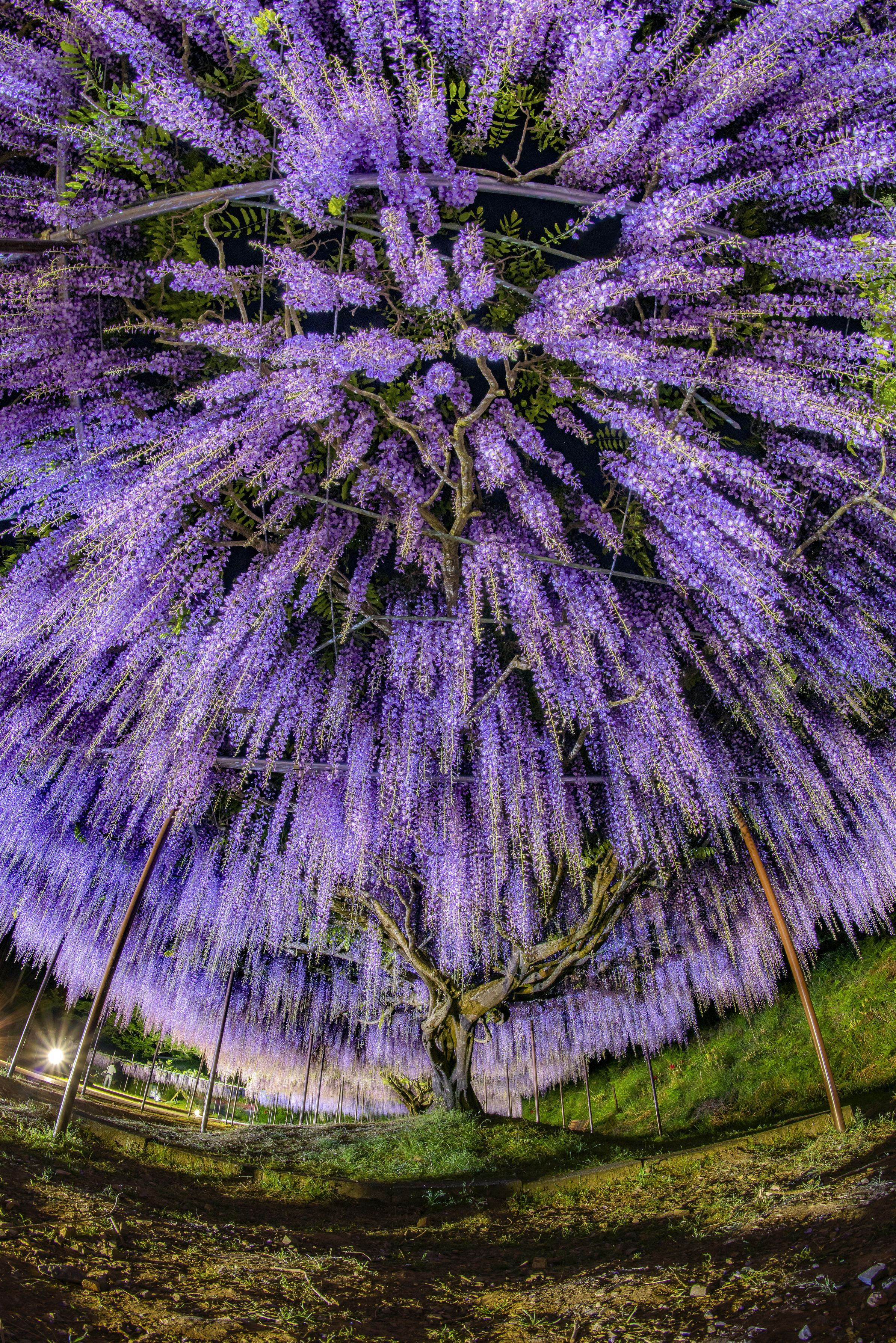 ほんと頭上で藤の花火が爆発したような見事な広角っぷりですね!(*^▽^*)