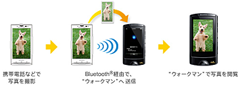 携帯電話で撮った写真を“ウォークマン”に転送して、“ウォークマン”で閲覧したり、