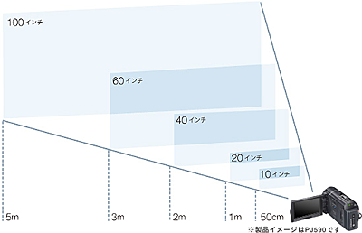最大で5mまで離れれば、100インチの大画面で楽しむことができる。