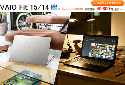 キャンペーン価格で49,800円から買えるお得な「VAIO Fit」は 8/22 AM9:15まで!