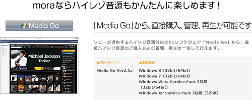 購入は「Media Go」から直接購入、管理、再生が行えます。