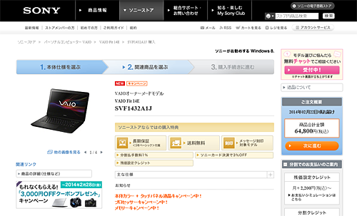 ・VAIO Fit 14E → VAIOオーナーメード価格シミュレーション