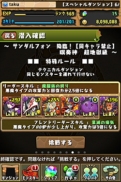 現在:ランク 369、スタミナ最大201、D組(ID:198,179,229)