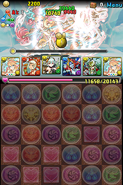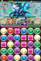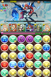消しながら回復もして「火・木・水・光」ドロップをためて、揃えば25倍でワンパン。