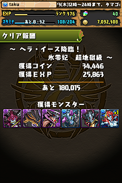 「ヘラ・イース降臨! 氷零妃 超地獄級」に挑戦しました。