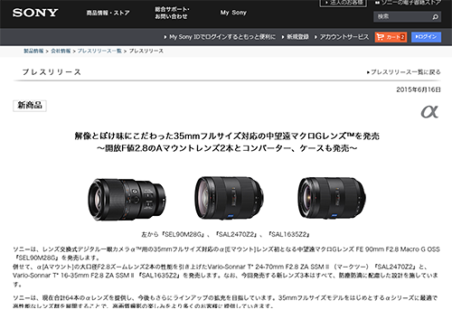 特にEマウント待望のマクロレンズは史上最高画質とも言われているので大注目ですね!