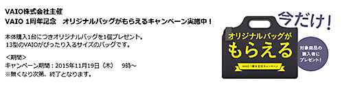 今なら「VAIO 1周年記念オリジナルバッグがもらえるキャンペーン」実施中です!