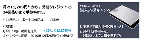 「VAIO Z Canvas」にお得なキャンペーンが始まりました!