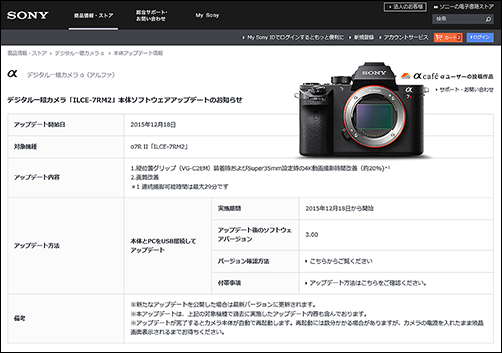 ・http://www.sony.jp/ichigan/update/ILCE-7RM2.html
