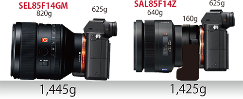 それでも若干「SEL85F14GM」のほうが重く大きくなるといった結果に。