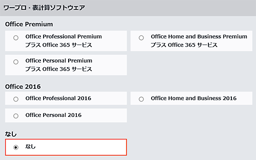 Officeは「Office Premium」と「Office 2016」から選べ価格は同じ、