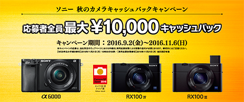 応募者全員に最大10,000円キャッシュバック!秋のカメラキャッシュバックキャンペーン!