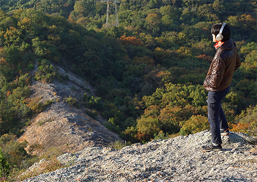 ワイヤレスノイズキャンセリングヘッドホン「MDR-1000X」を着けて登りました。