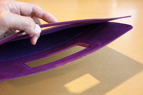 取っ手部内側はこのように紫色で、意外に外観とは違って派手でいい感じでした。
