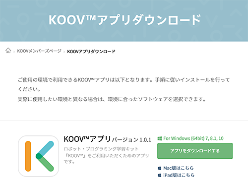 「KOOVアプリ」がダウンロードできる。