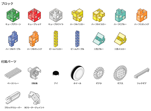 付属ブロックとパーツの種類は全部でこれだけ。